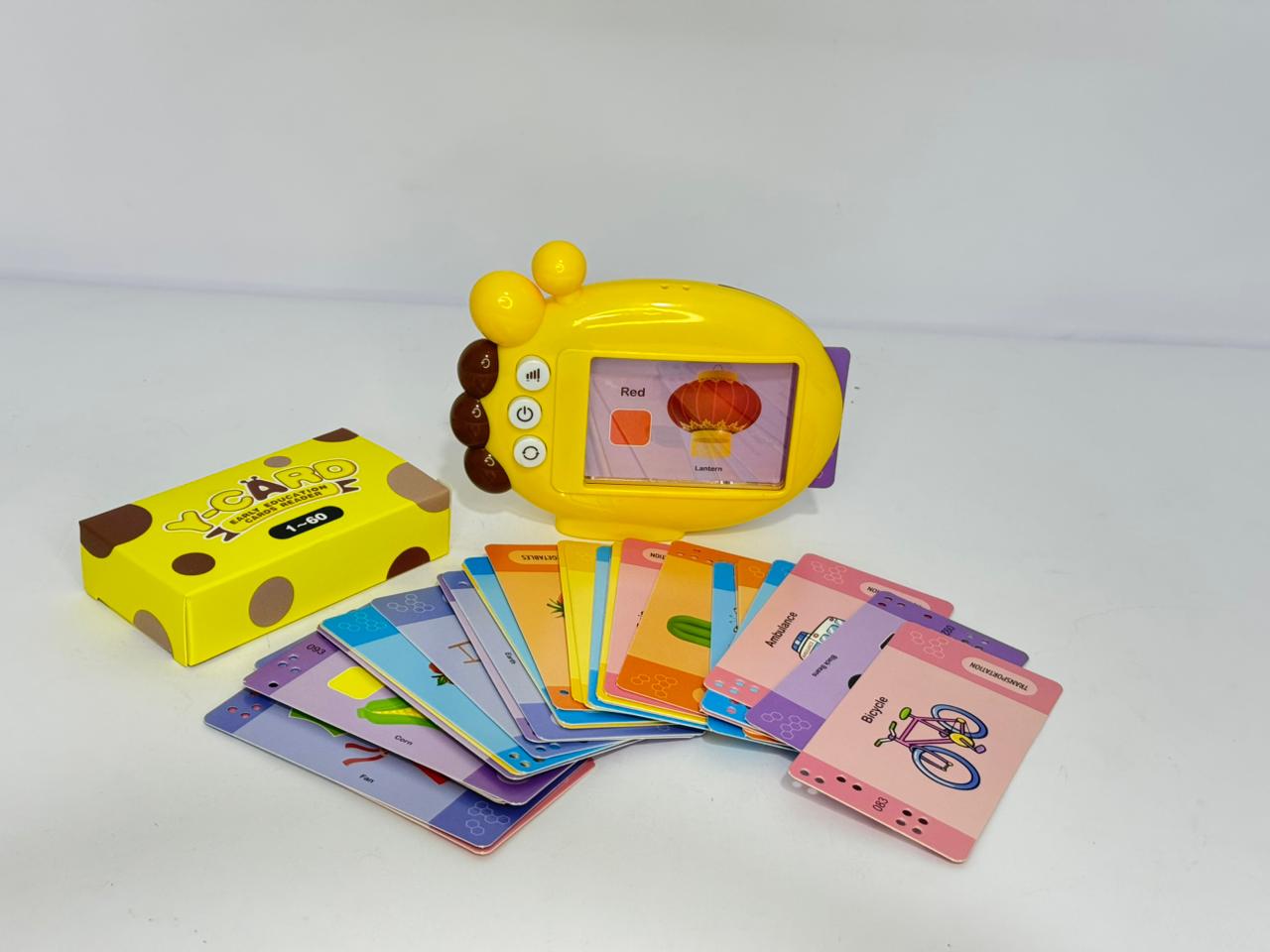 📝 طريقة الاستخدام: يقوم الطفل بإدخال البطاقة في الجهاز ليسمع نطق الكلمة بالإنجليزية مع صورة توضيحية.
