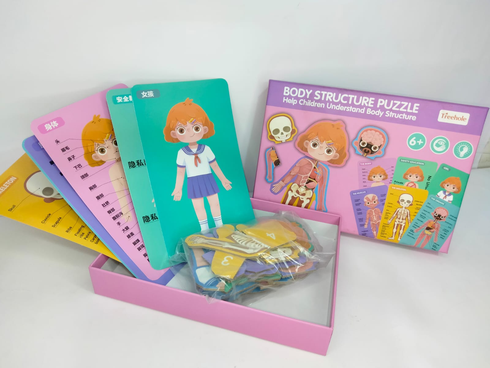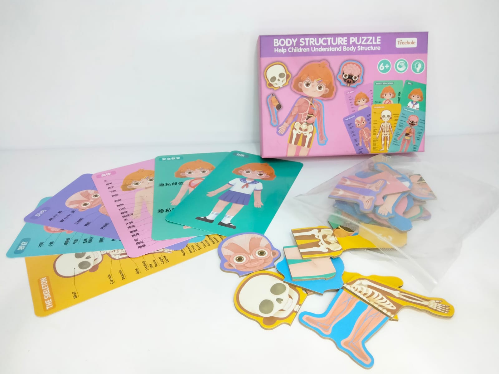 يقوم الطفل بتركيب القطع حسب المراحل (الهيكل العظمي – العضلات – الجسم الخارجي) ليتعرف على أجزاء جسم الإنسان.
