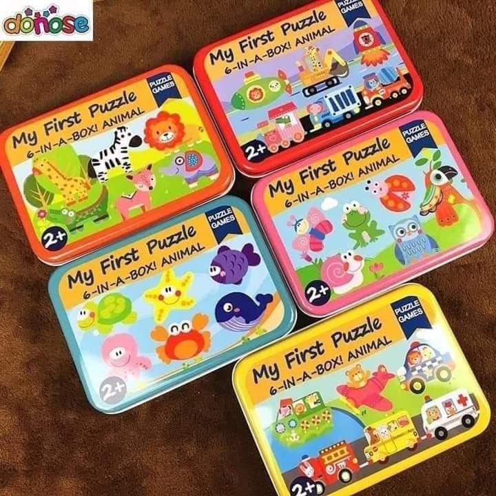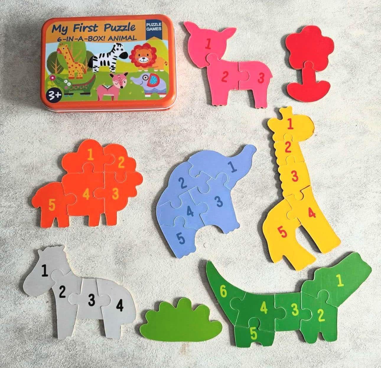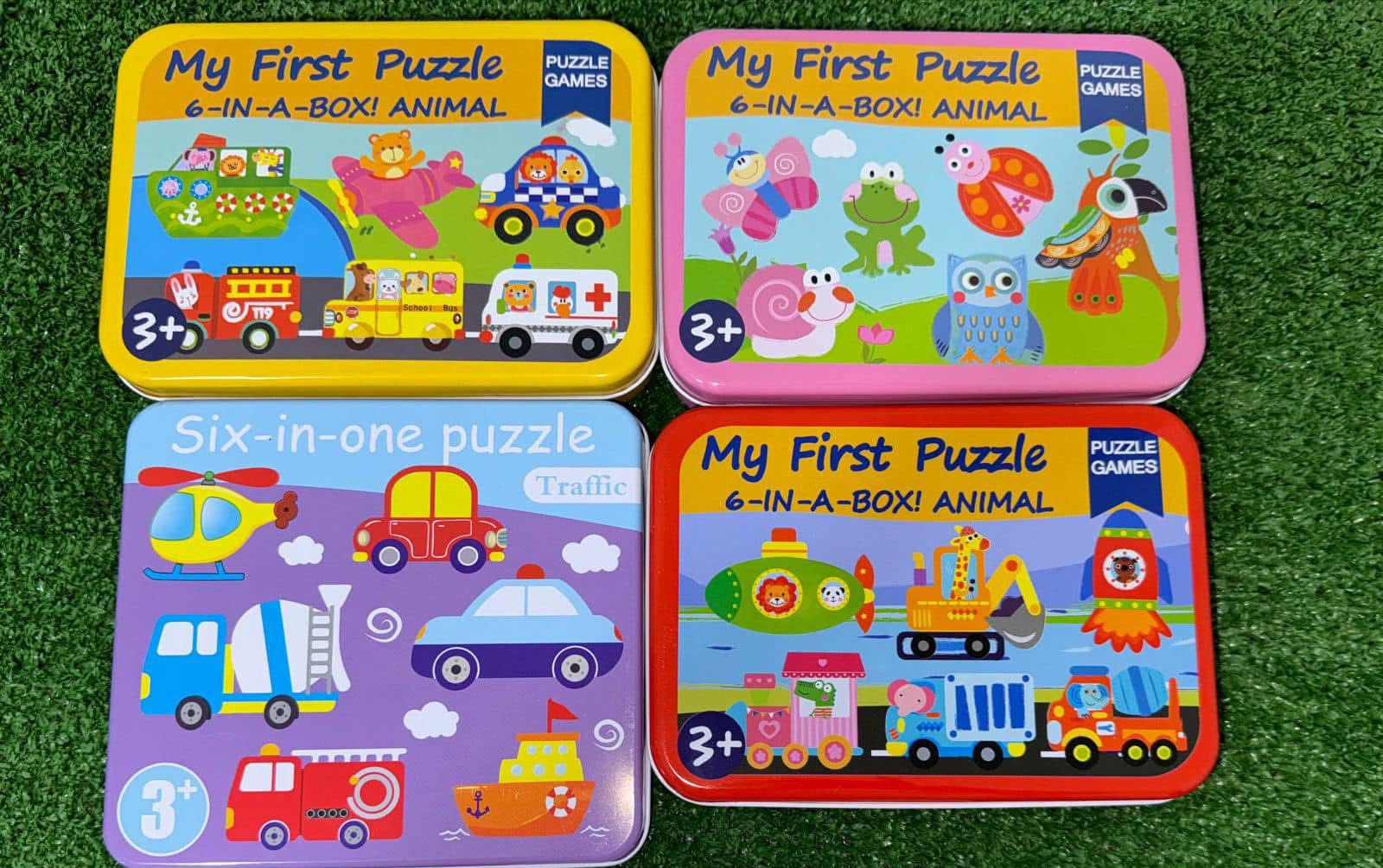 بازل خشبي 6 اشكال في علبه معدن 💥💥