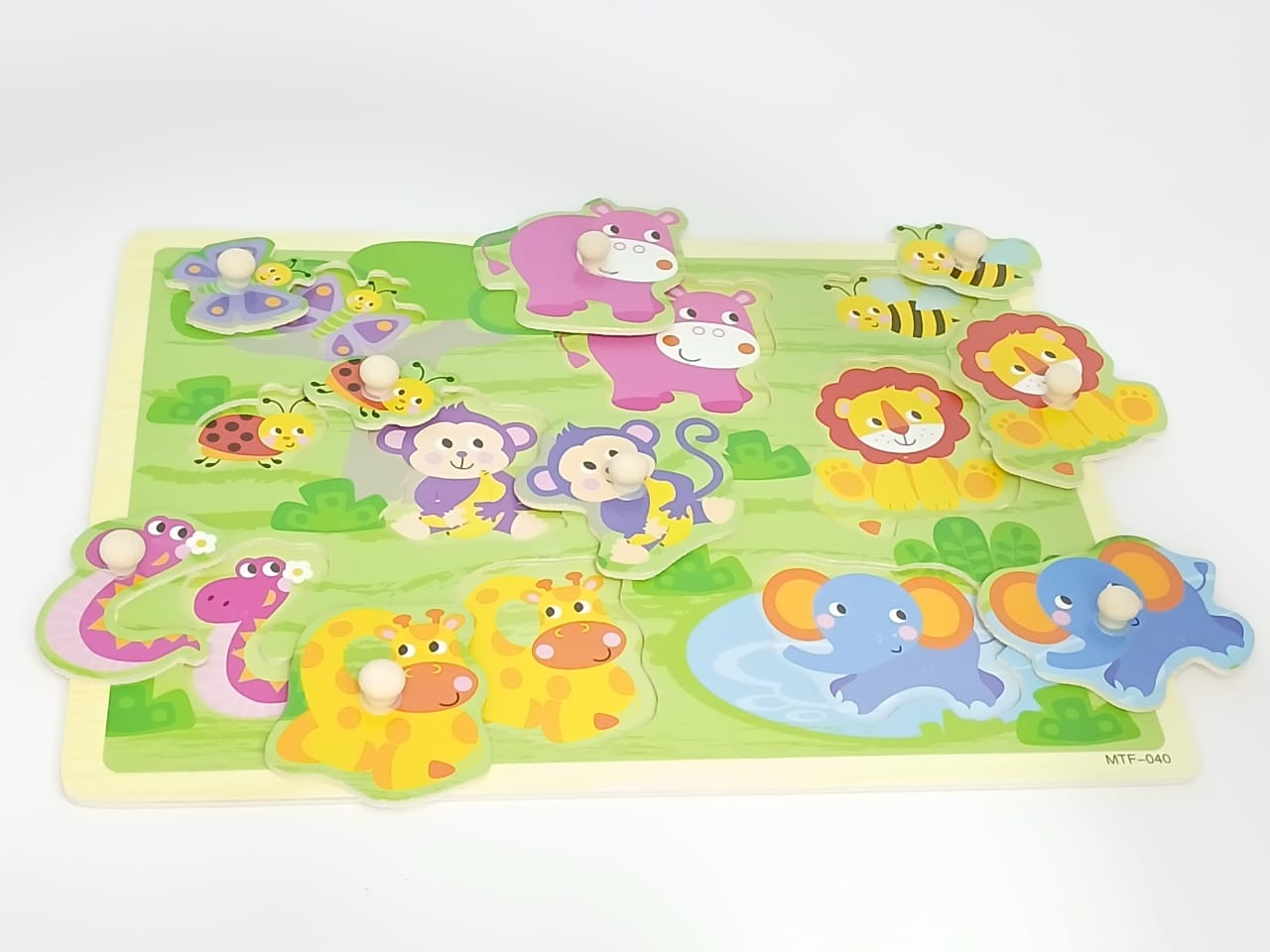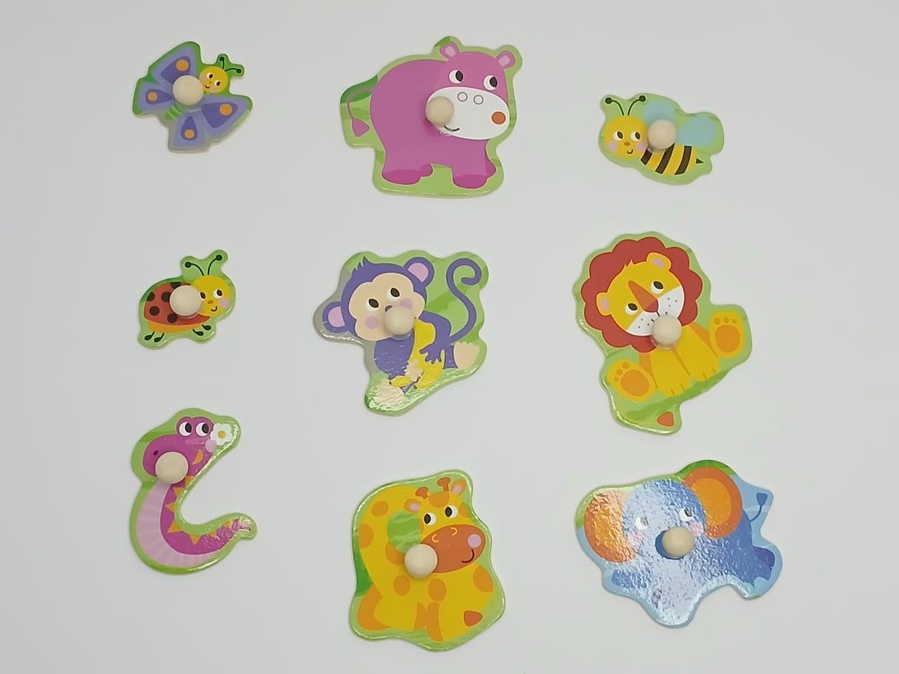 يقوم الطفل بمطابقة كل قطعة في مكانها الصحيح داخل اللوحة باستخدام المقابض الصغيرة