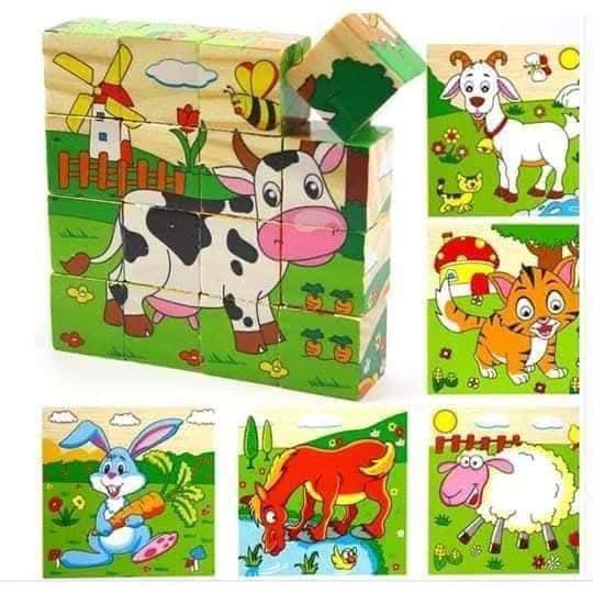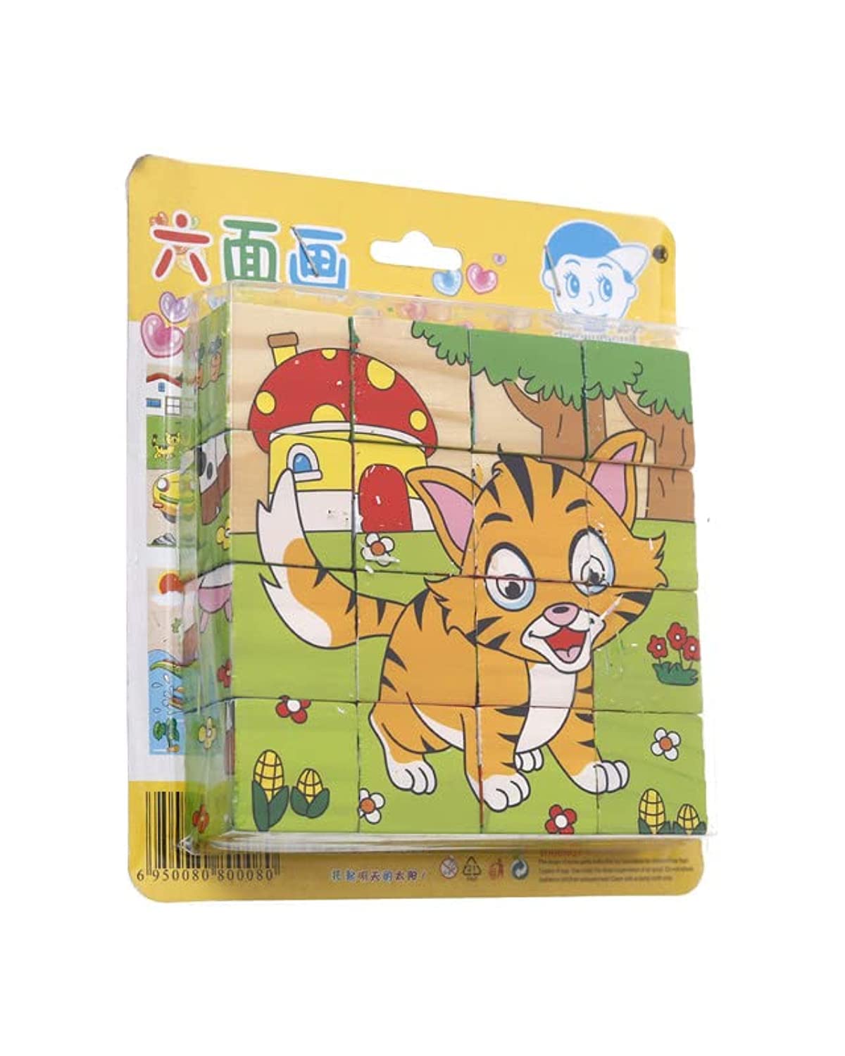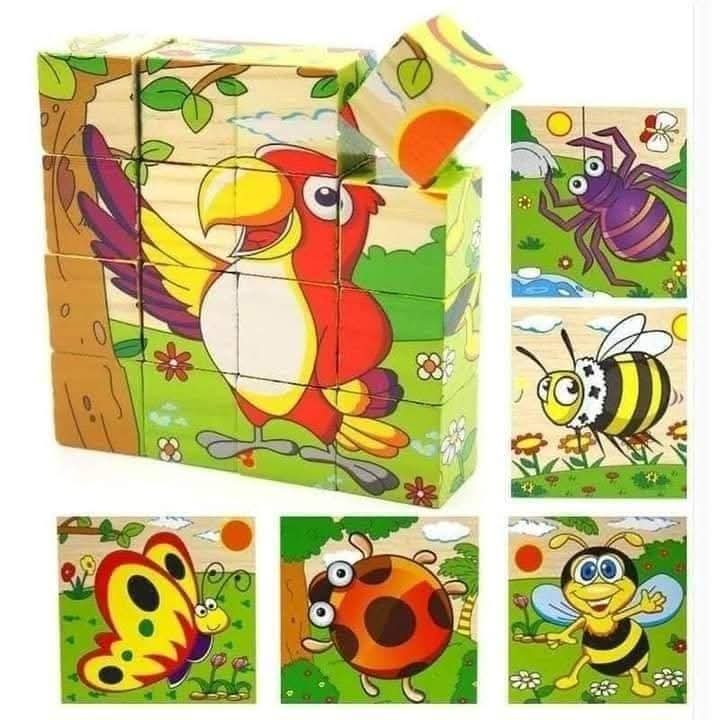 بازل المكعبات يتكون من ١٦ قطعه خشبيه ويكون ٦ أشكال