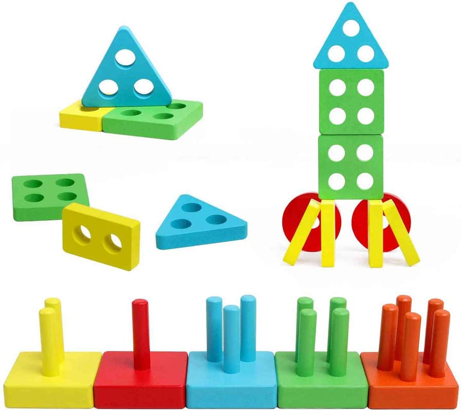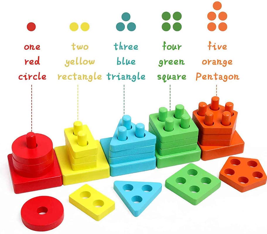 عبارة عن قاعدة خشبية بهااعمدة وقطع اشكال هندسية مختلفة والمطلوب من الطفل ادخال القطع الهندسية فى كل عامود مناسب له