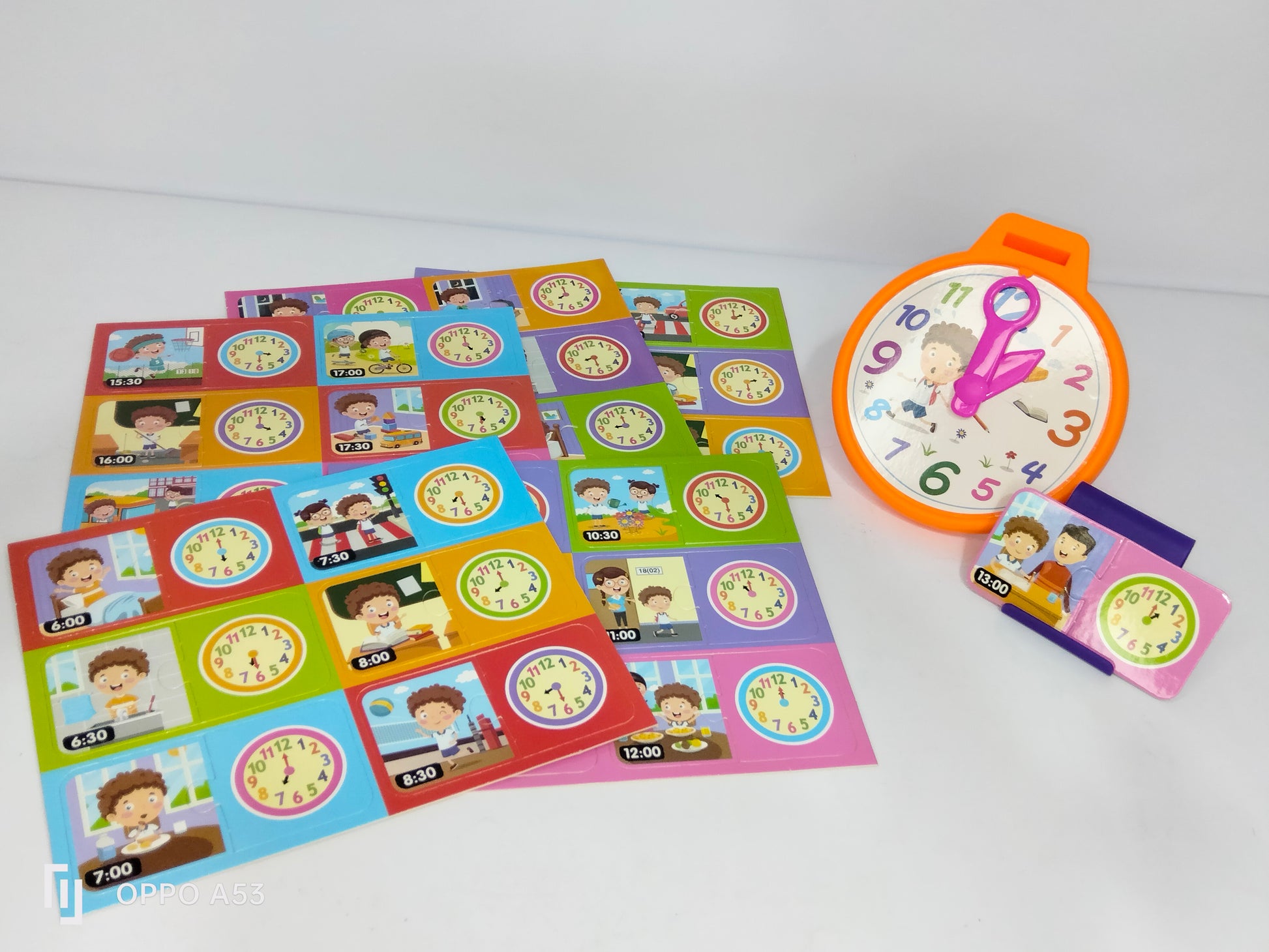 ساعة تعليمية ملونة – عقارب متحركة – بطاقات توضيحية للأنشطة اليومية