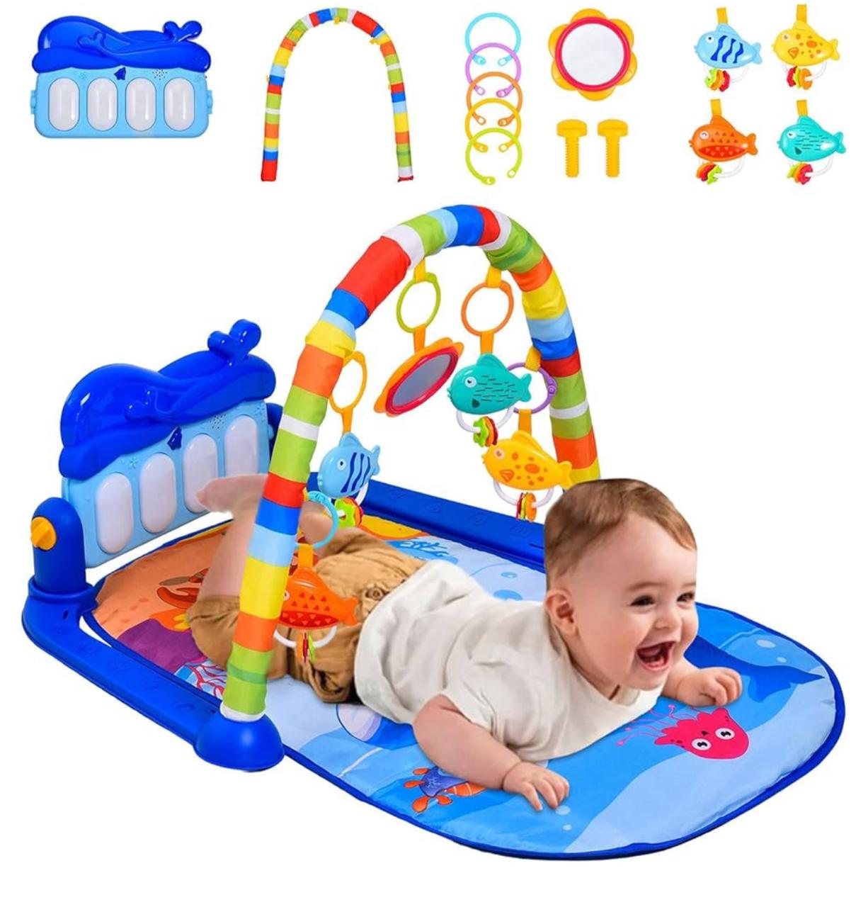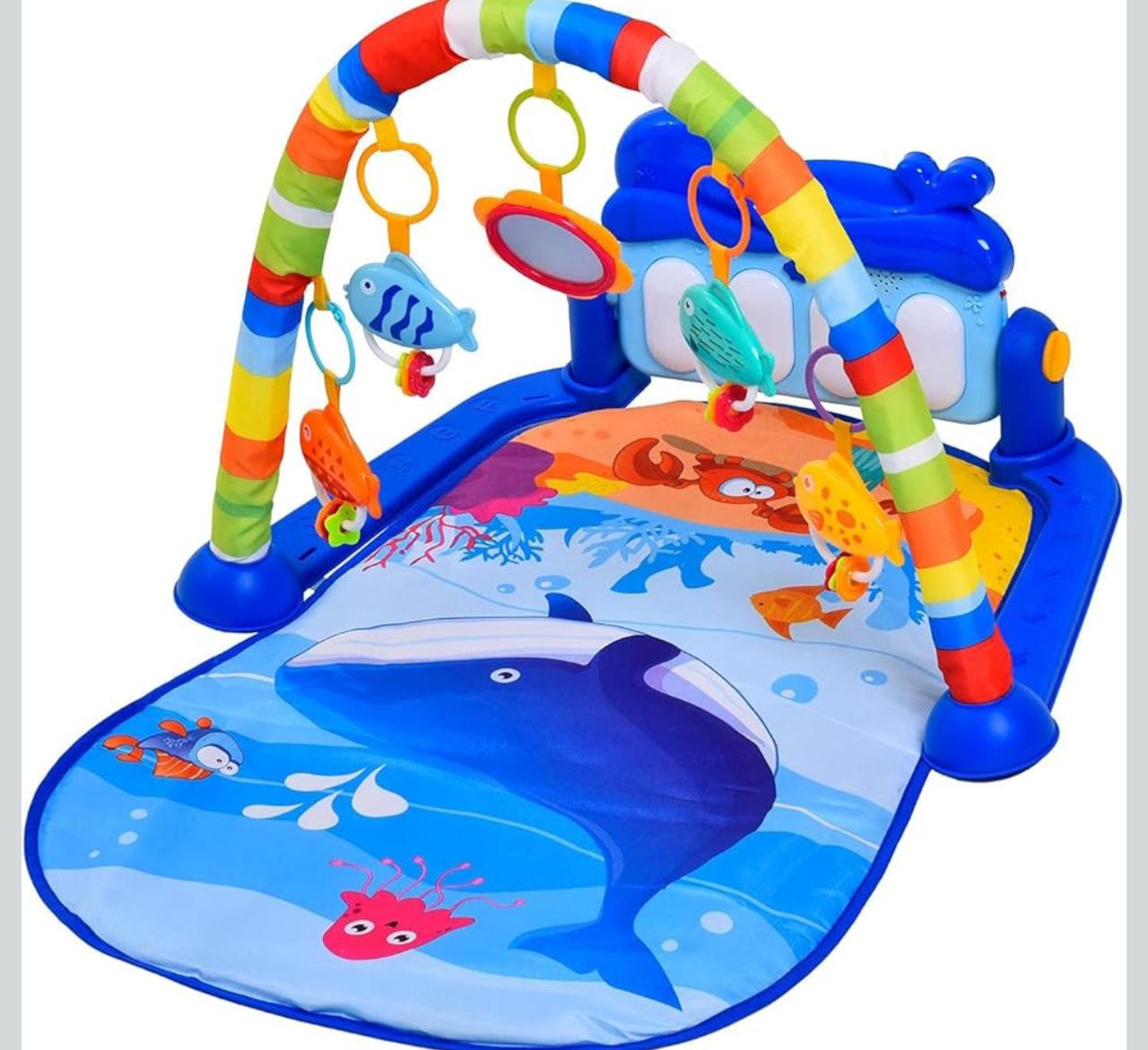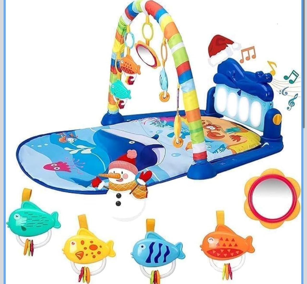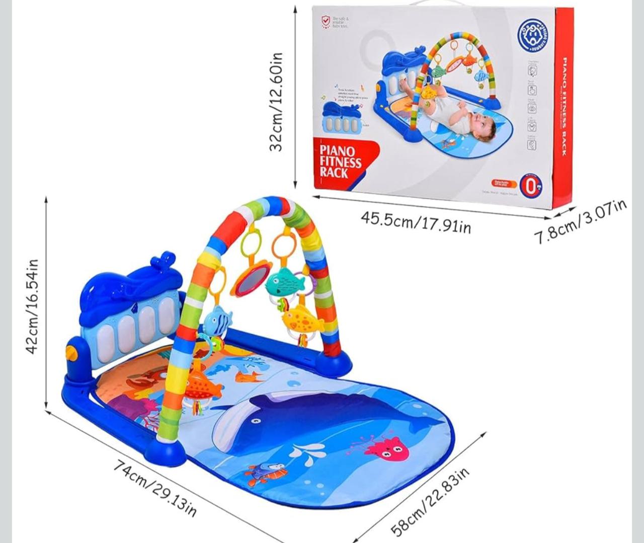* سجادة مميزة فيها أربع أزرار بيانو بتصدر أصوات موسيقية ممتعة تشجع الطفل على الاستكشاف وتنمّي حاسة السمع.