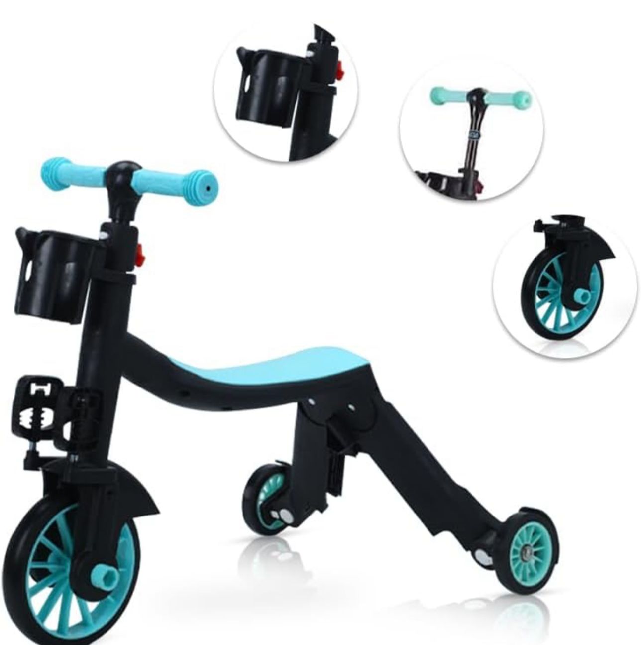 يمكن استخدامه كعجلة بثلاث عجلات مع الدواسات، أو كسكوتر عند طي الدواسات ليمنح الطفل أكثر من طريقة للمتعة واللعب