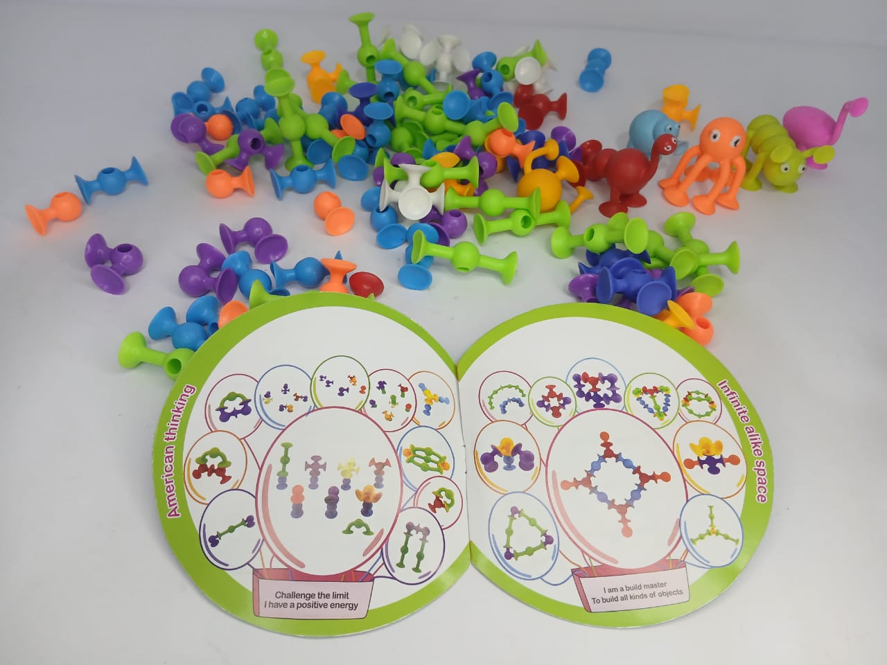 يقوم الطفل بتركيب القطع مع بعضها لصنع أشكال مبتكرة مثل الحيوانات، الأشكال الهندسية أو المجسمات المختلفة.