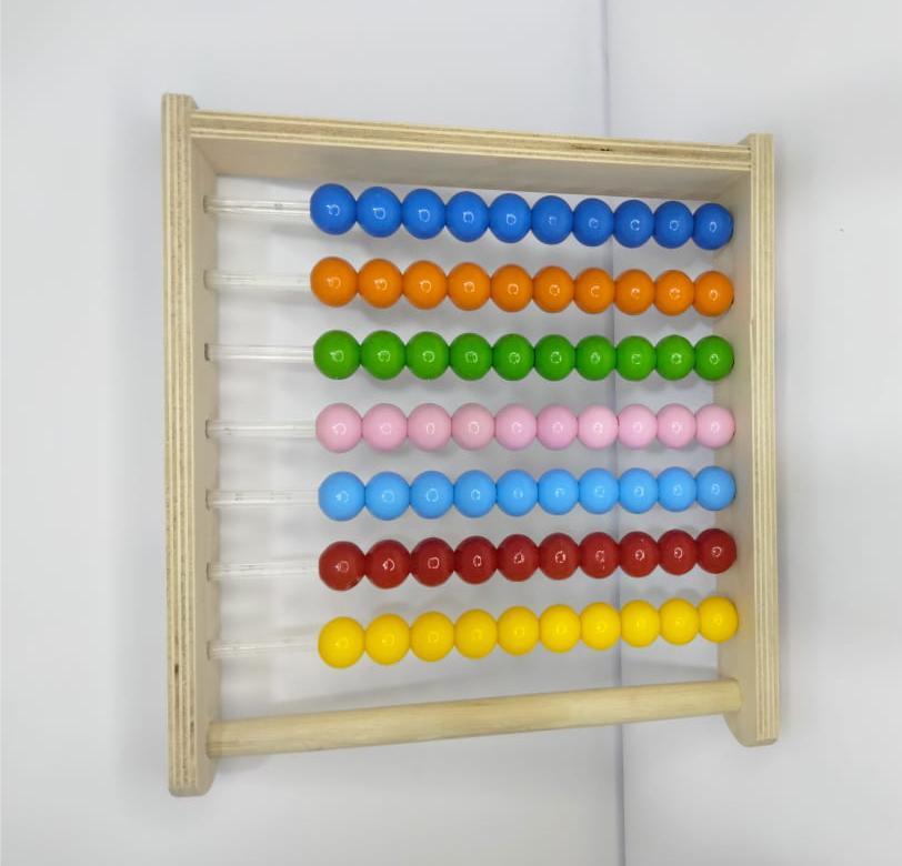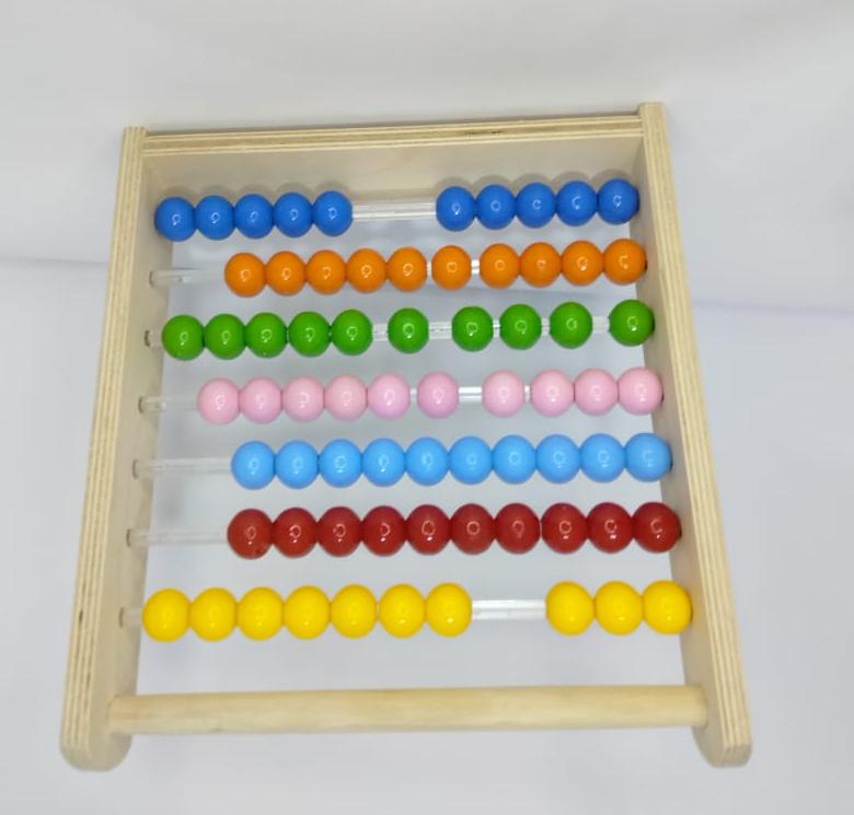 محتويات اللعبة: عداد خشبي ملون يحتوي على صفوف من الخرز بألوان مختلفة.