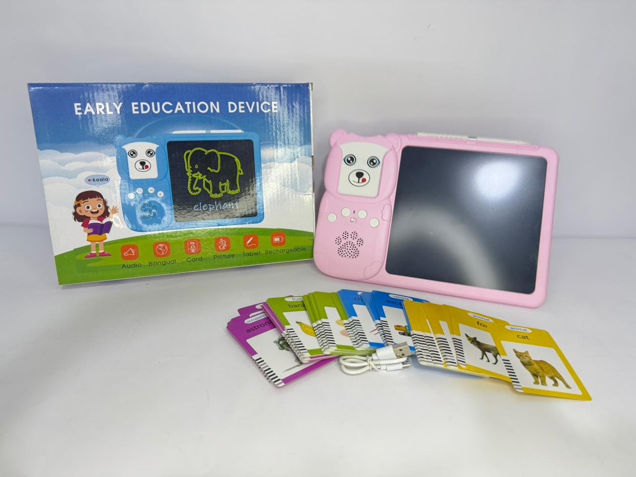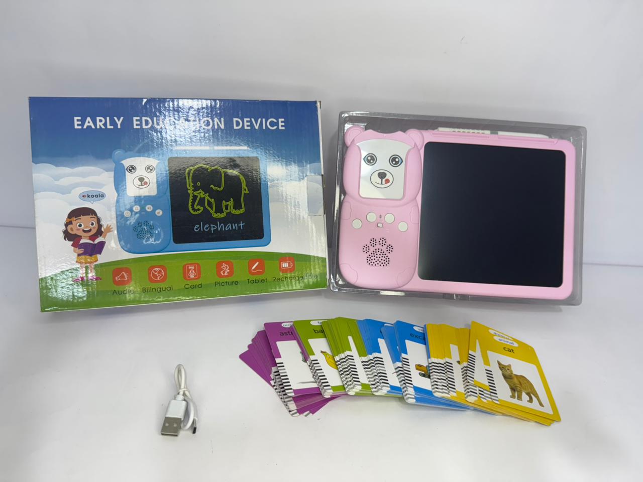 📦 محتويات اللعبة: جهاز ناطق بشكل دب لطيف + أكثر من 100 بطاقة تعليمية ملونة + كتيب تعليمات + كابل شحن.