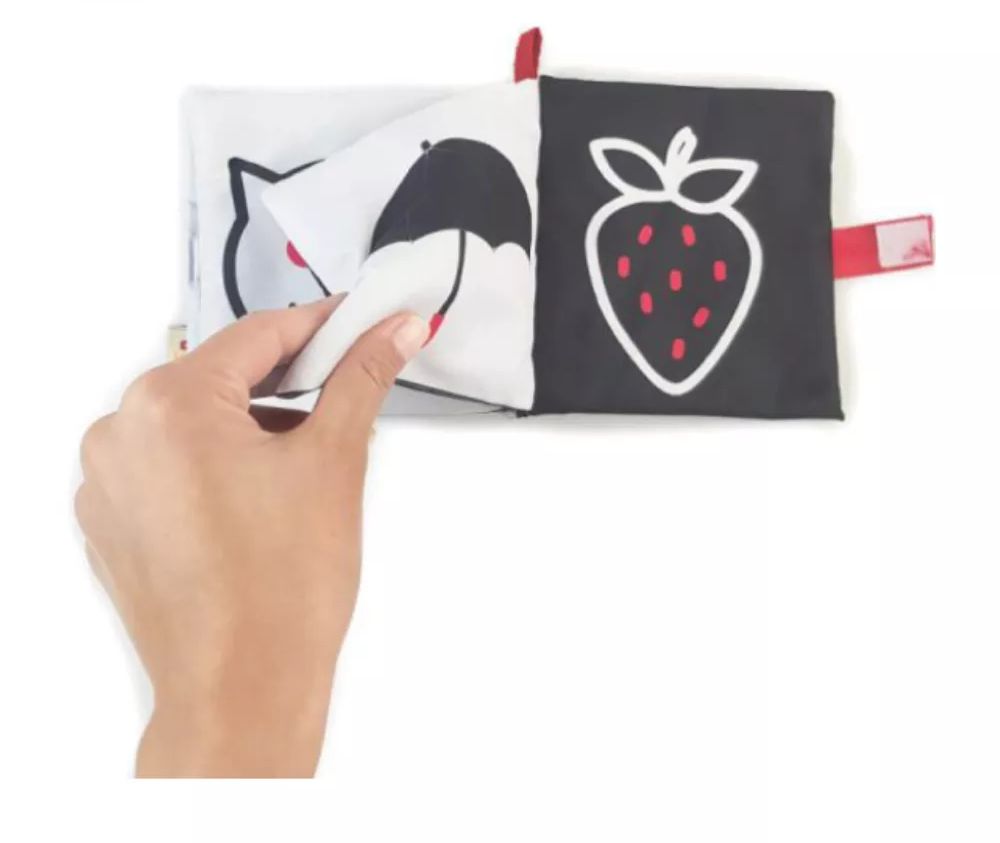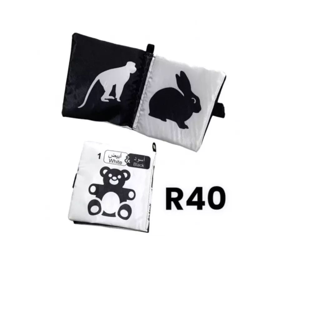 • كتاب قماش مخصص للرضع بالألوان الأساسية (أبيض وأسود).