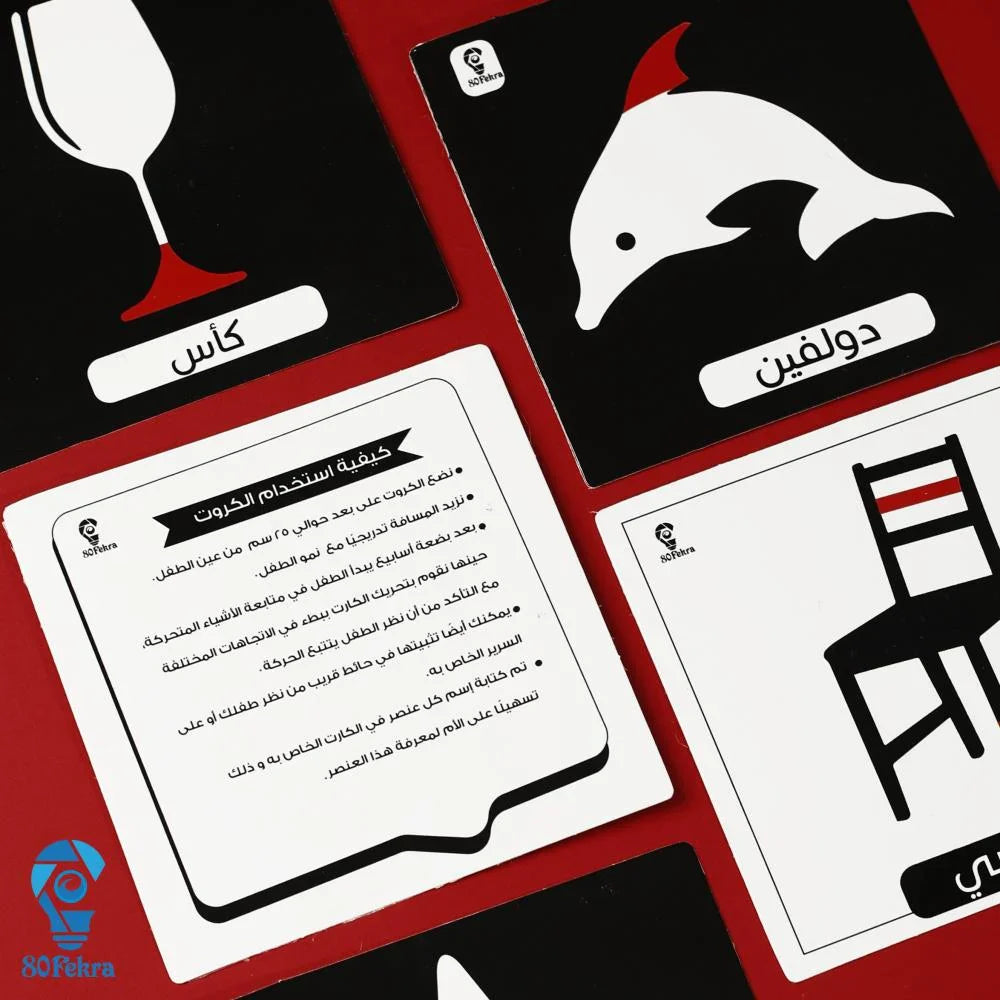 نمو بصري مبكر لطفلك - كروت أبيض وأسود – تحفز التركيز والانتباه منذ الأشهر الأولى
