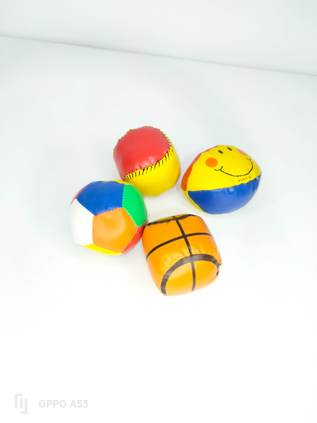 📦 محتويات اللعبة: 4 كرات قماشية ملونة بأشكال مختلفة (كرة سلة – كرة بيسبول – كرة ضاحكة – كرة متعددة الألوان).