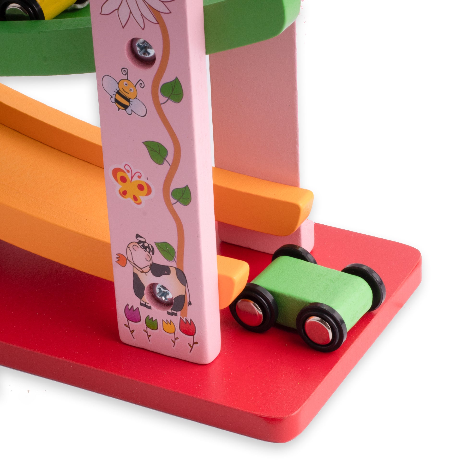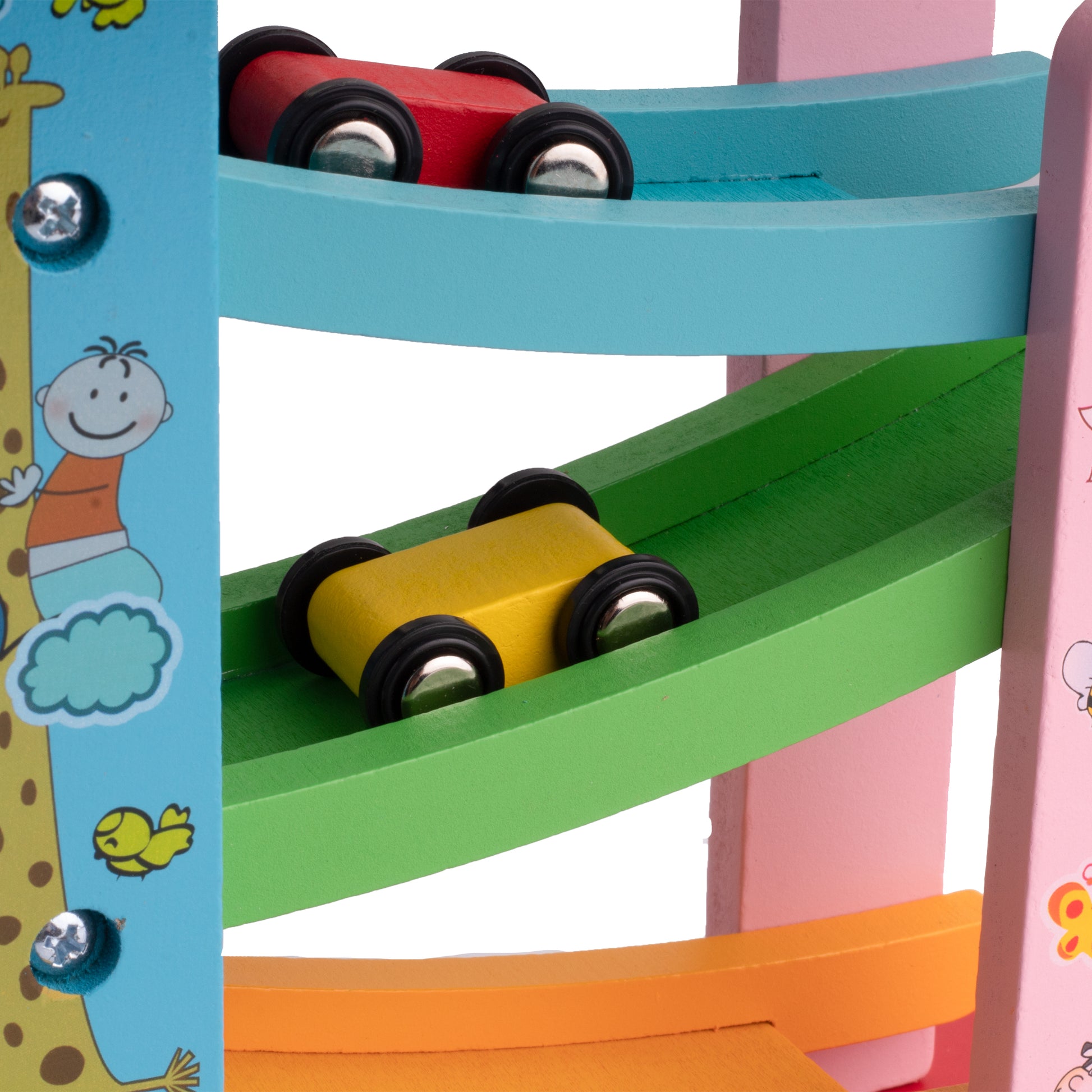- يضع الأطفال السيارات في أعلى المضمار ويشاهدونها تنطلق، مما يعزز التنسيق البصري الحركي و المهارات الحركية الدقيقة أثناء اللعب