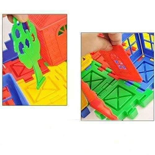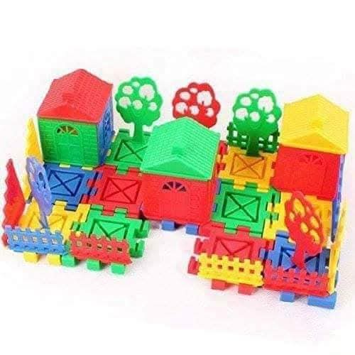 بيكون اشكال كتيره من البيوت يقدر الطفل يبتكر اكتر من شكل ويحط الديكور والاشجار ويتقمص دور المهندس الصغير