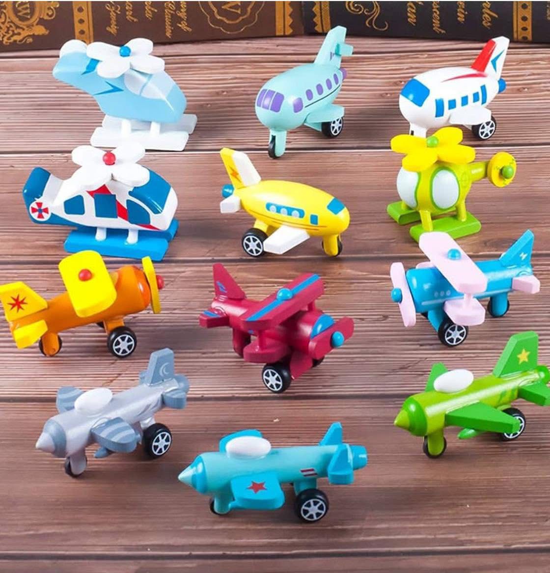 خلي لعب ابنك/بنتك مليان متعة وتعلّم مع طيارات خشبية بألوان وأشكال مختلفة.