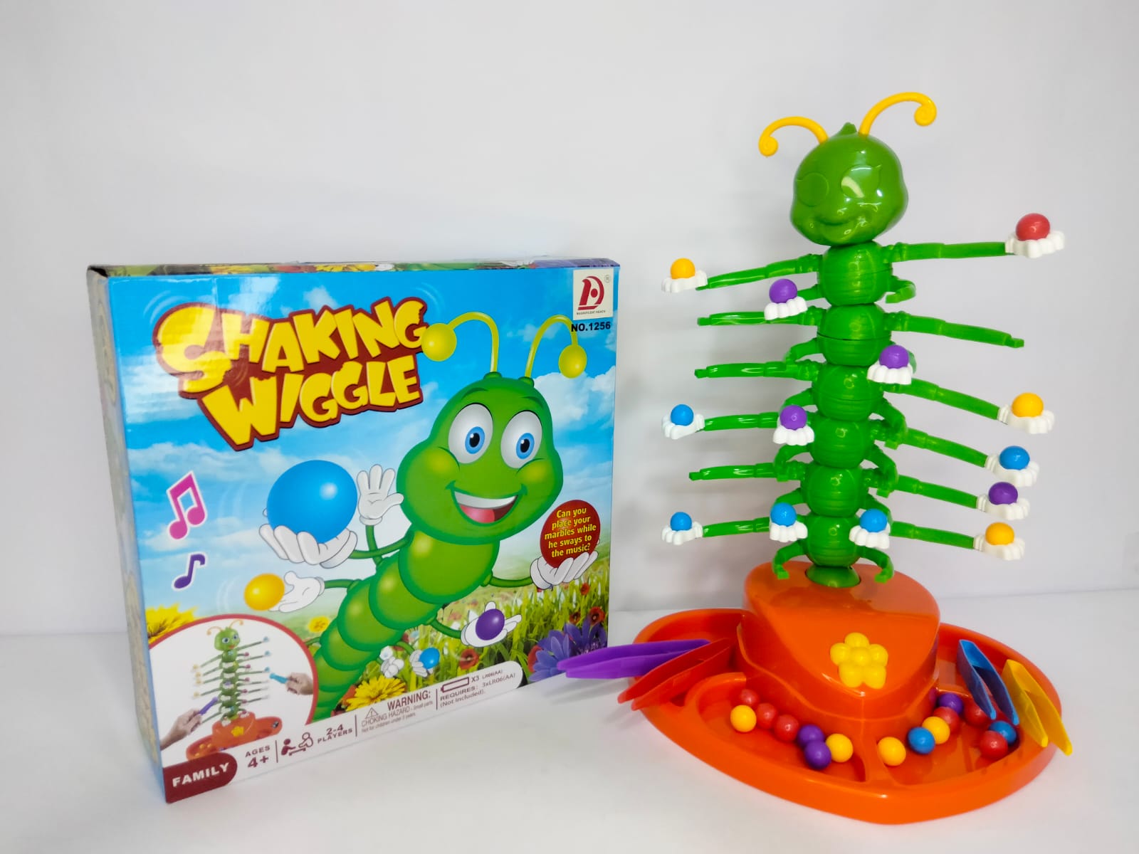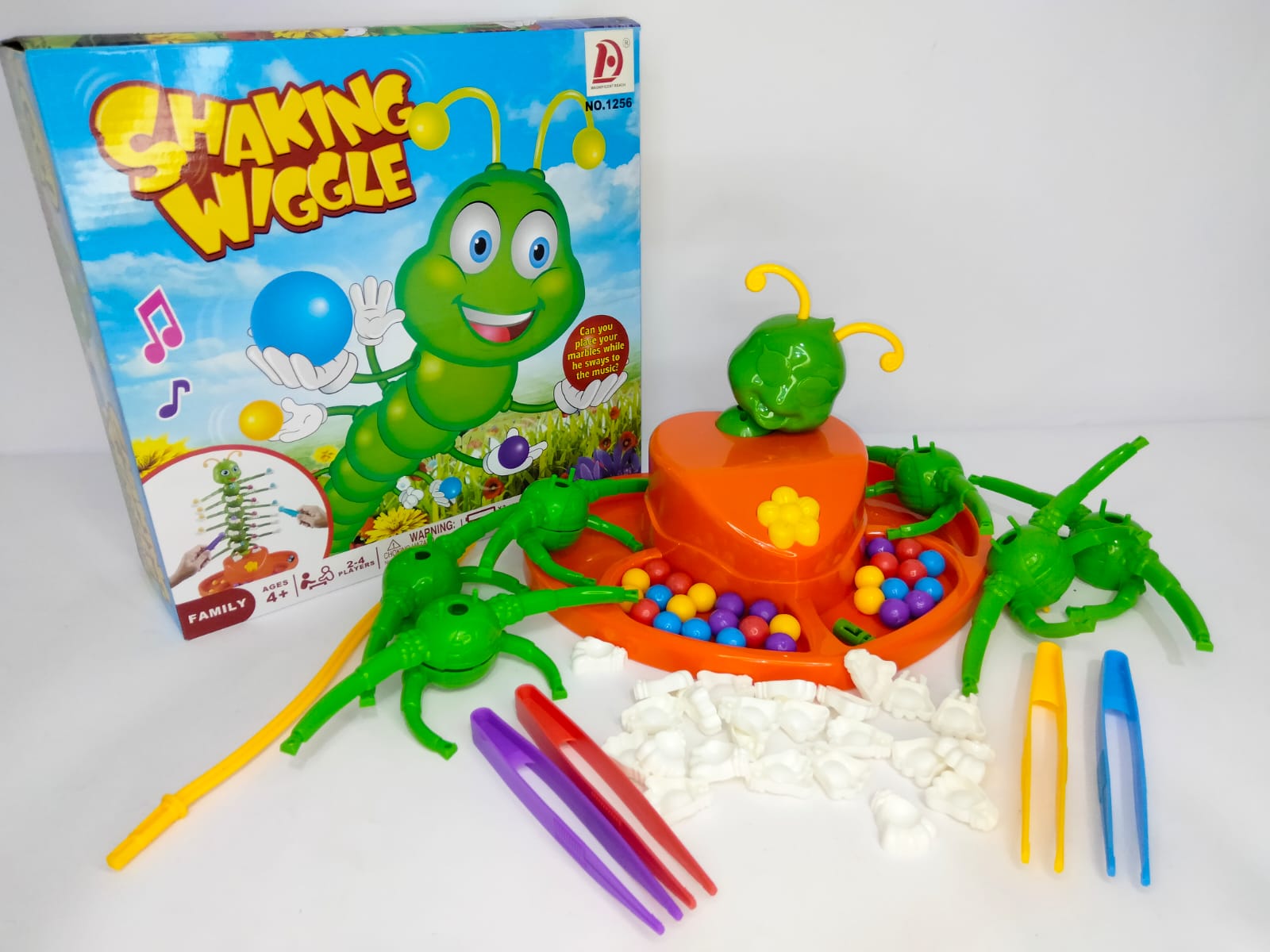 محتويات اللعبة: مجسّم يرقة خضراء تهتز وتتحرك + مجموعة كرات ملونة + قاعدة تثبيت + أدوات مساعدة.