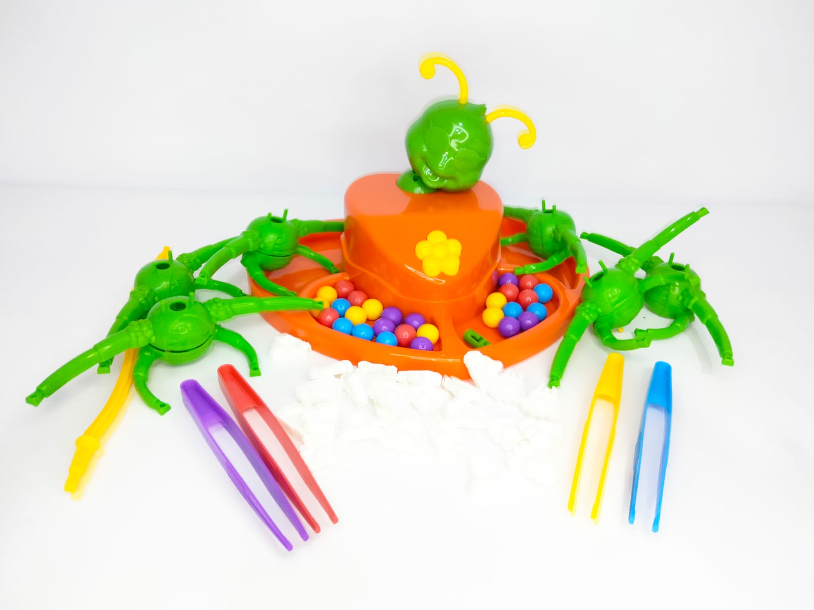 طريقة الاستخدام: يقوم اللاعبون بوضع الكرات الملونة على أذرع اليرقة المتحركة دون أن تسقط، والفائز هو من يثبت أكبر عدد من الكرات.